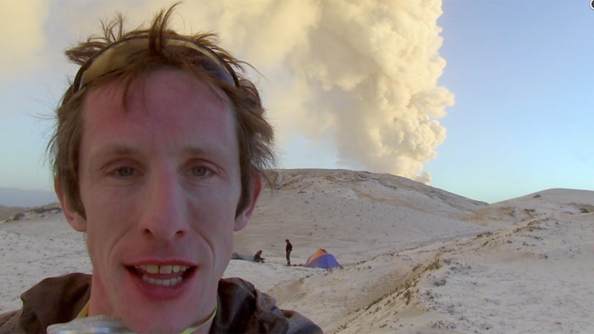 Dr Hugh Tuffen watches the Puyehue volcano in Chile as it erupts.