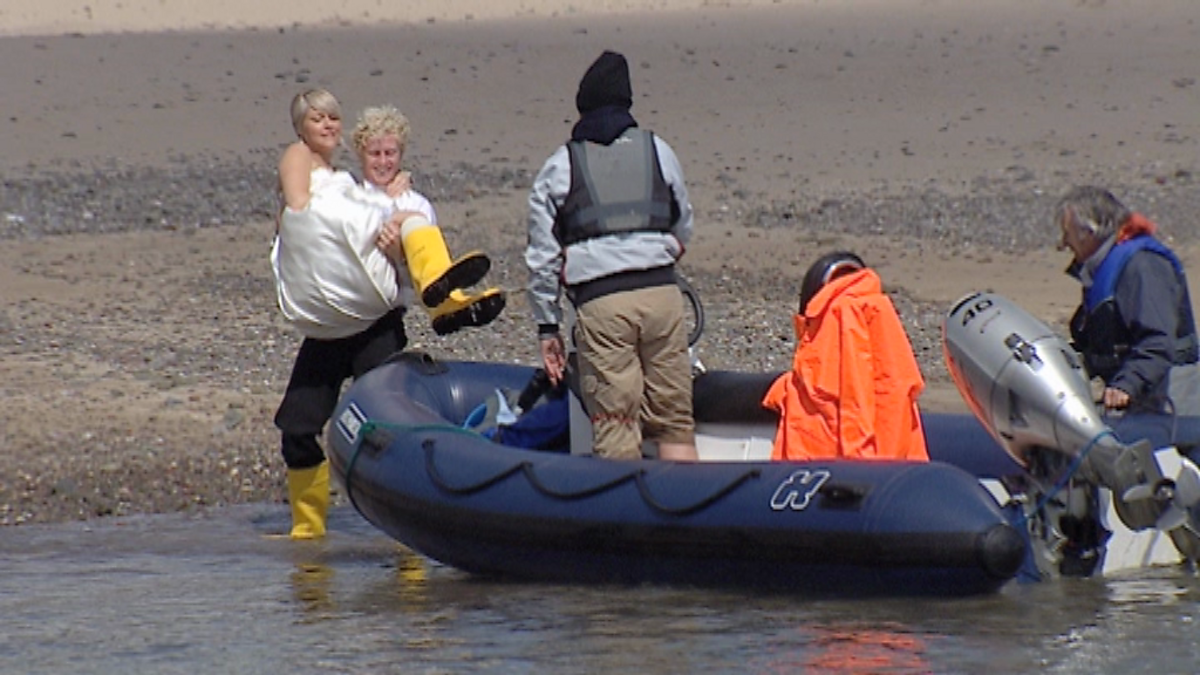 Bride Mel is given a wedding fit for a fish wife.