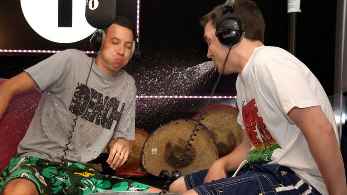 Chris and 1Xtra's Nick Bright don their swimwear for an acquatic special Innuendo Bingo