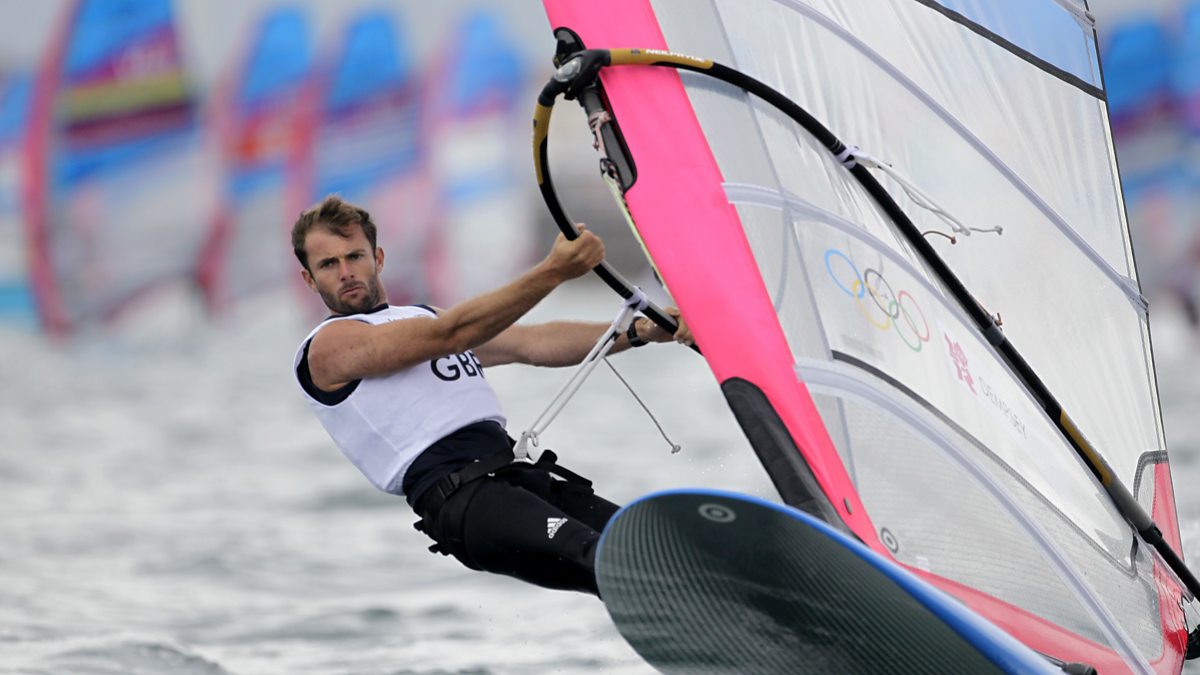 Two races in the men's windsurfing from Weymouth