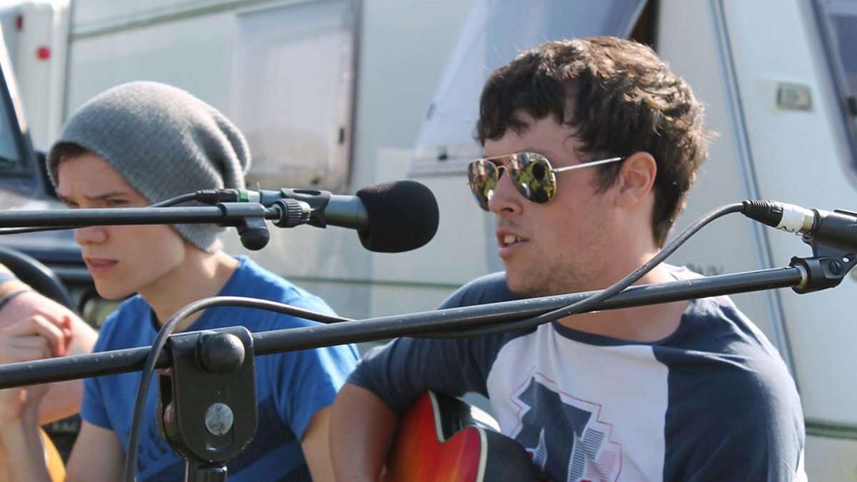 Dafydd a Caryl yn darlledu o faes carafanau Eisteddfod Bro Morgannwg 2012.