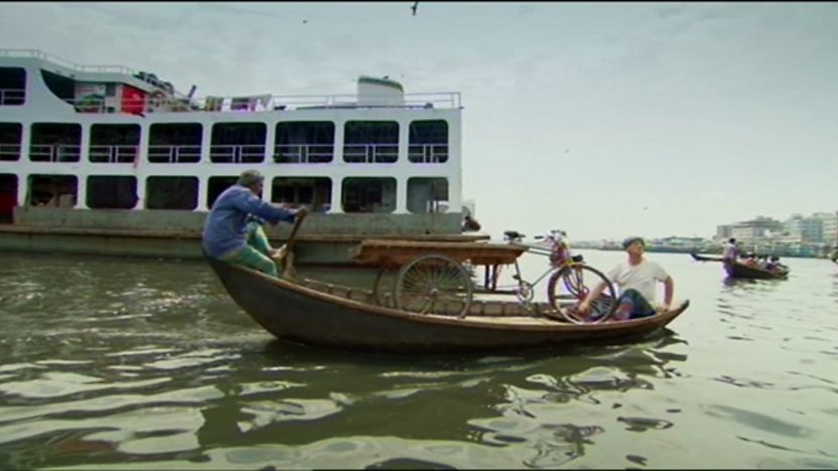 Mr Loteef serenades Colin as they cross the Buriganga River