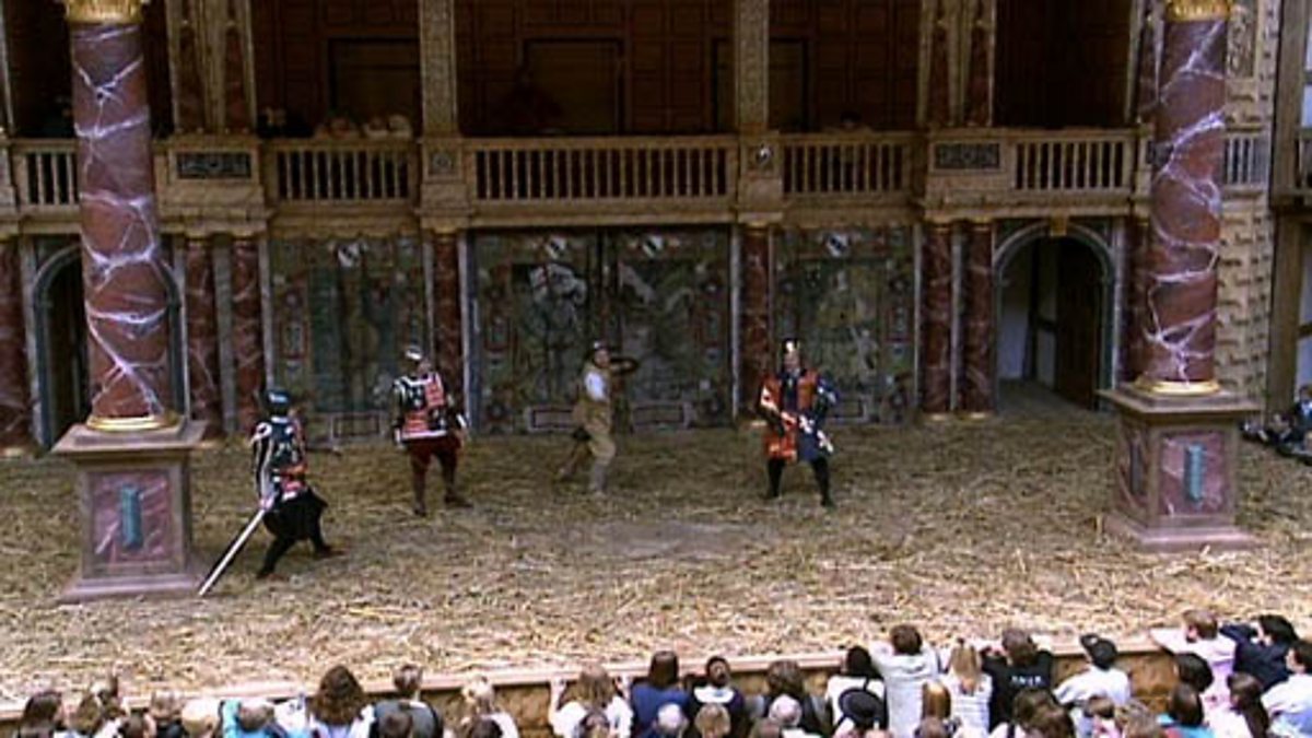 Alan Davies uses clips from a 1997 production of 'Henry V' to portray what life was like for the audience watching Shakespeare's plays at the Globe in Elizabethan times. Davies focuses on the humorous nature of the plays, the lack of alternative entertainment available and the appeal of the 'public play houses', otherwise known today as theatres. Davies also explores the question 'why was the Globe so popular?' and uses many contextual references in answer to the question. He briefly discusses the introduction of new words and phrases to the English language towards the end.