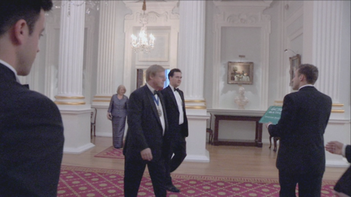 Barnaby & James greet George Osborne with a gift