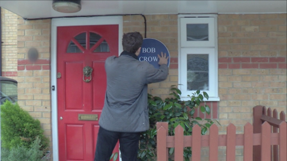 Heydon Prowse puts a blue plaque on the house of Bob Crow, possibly the wealthiest council tenant in Redbridge.