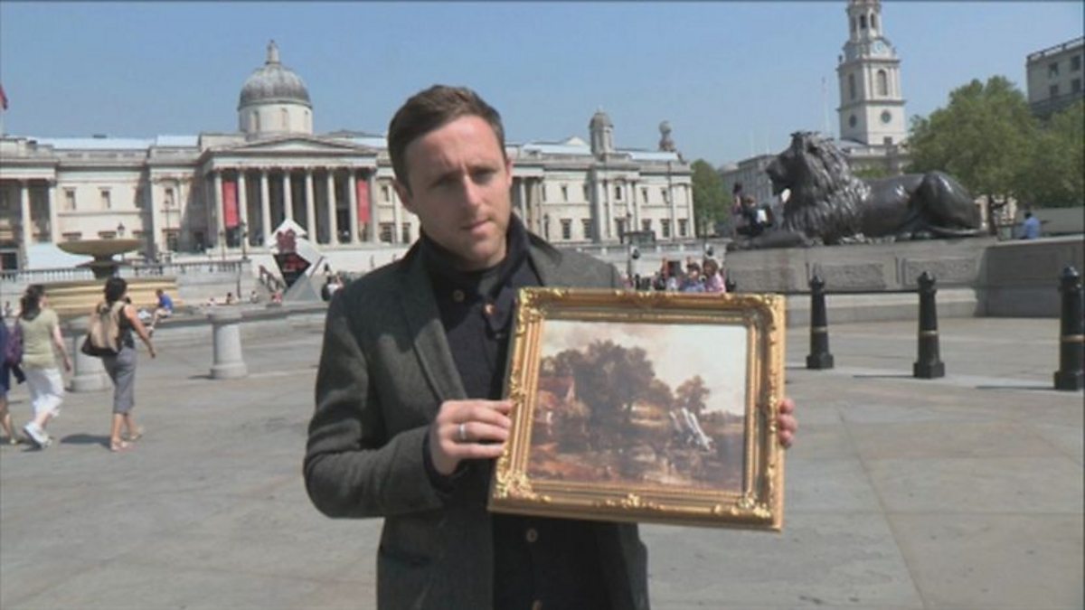 Heydon Prowse hangs a picture of Constable's The Haywain on the wall of the National Gallery. However there are three cruise missiles in the picture, to highlight the fact that the National Gallery is part-sponsored by one of Europe's biggest arms dealers.