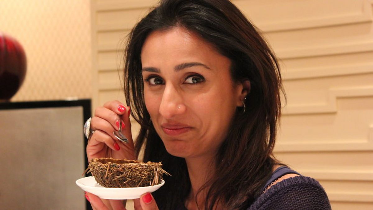 On her journey for China on Four Wheels Anita Rani visits luxury Qingdao restaurant Yiqinglou, where she's dared to try local specialities jellyfish and raw sea cucumber.