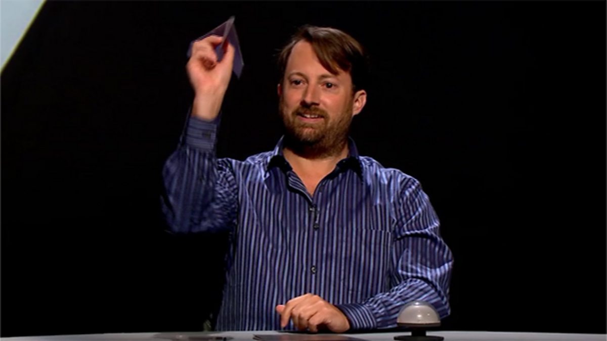 Katy Brand, Alan Davies, Sue Perkins and David Mitchell attempt to make good paper darts - and Stephen Fry reveals the unusual shape that will send them the farthest.