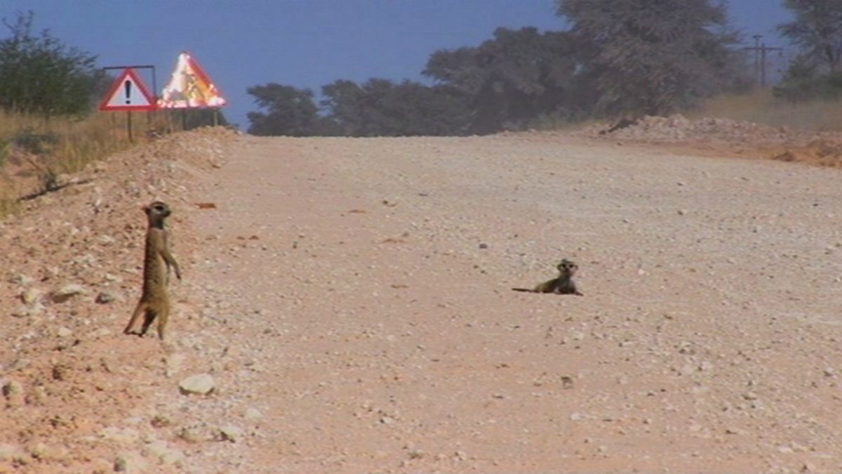 In order to find food, the Whiskers meerkat family have to cross a busy road that bisects their territory. Cameraman Toby Strong knows only too well how fatal this decision could be.