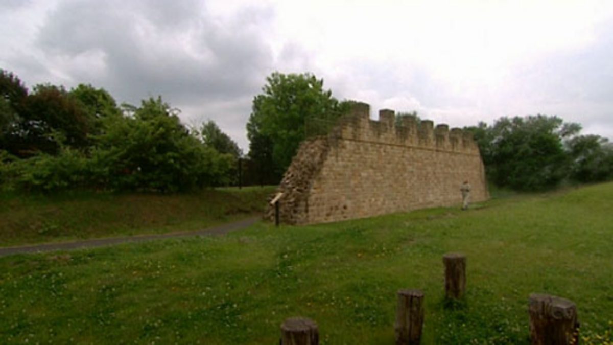 A visit to a reconstructed section of wall gives an important sense of scale as the presenter stands dwarfed beside it. A computer-generated sequence impressively conjures up the impact it will have had as it travelled through the landscape.