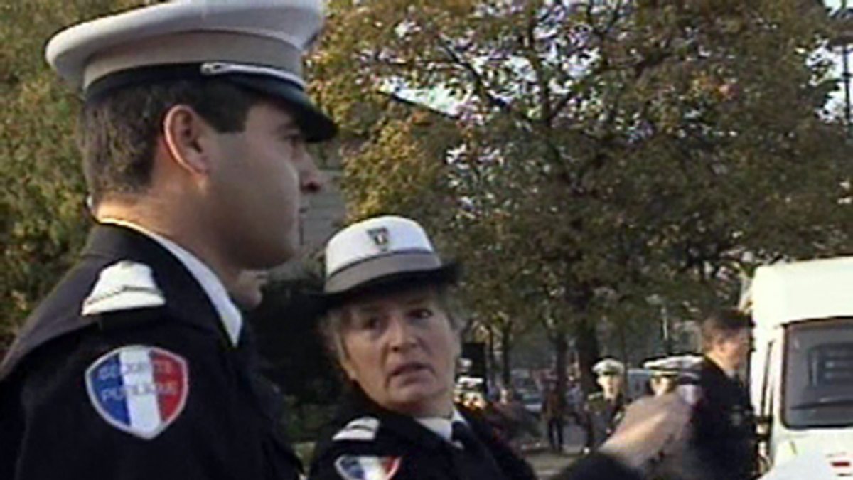 A look at the role of a traffic policeman in Paris. There is an organisation which deals with the logistics of traffic in France. This organisation communicates with the traffic police. The police need to be alert, using whistles to send out messages on the roads. We see them working on a typical day when they are called out to control traffic. They explain that they enjoy their job immensely.
