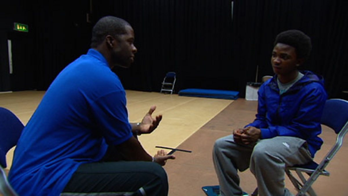Adrian Lester discusses with the lead actors how Romeo and Juliet feel when they meet in Act 1 Scene 5 and Act 2 Scene 2. The discussion is interchanged with clips from the final performance to demonstrate the points that he makes.