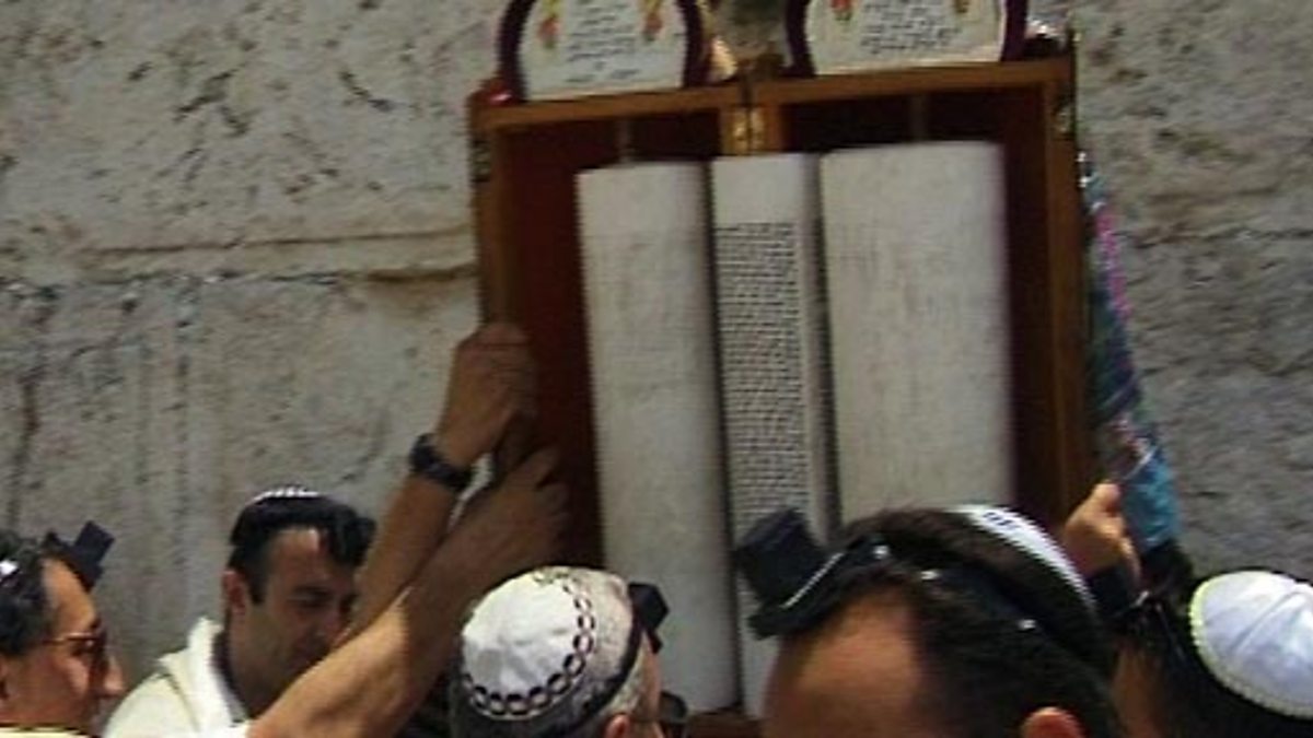 Two Jewish teenagers explain the importance of the Temple in Jerusalem for Jews. God commanded the Jews to build a golden arc to keep the blocks of stone on which the Ten Commandments were written. The Jews stored the arc in the Temple in Jerusalem. Although the Temple was destroyed twice, and the arc lost, the site of the Temple is still a holy place. The only part left standing today is the Western Wall, and Jews travel from all over the world to pray there.
