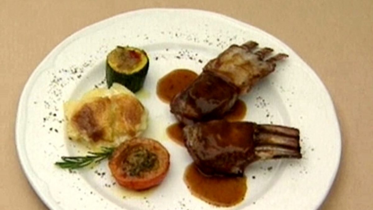 A couple sit down to lunch at a hotel and decide what they would like for their first and second courses. They order their meals and some wine. We then see a family of five ordering lunch at a family-run restaurant in the country. The expression for 'Bring us' is introduced.