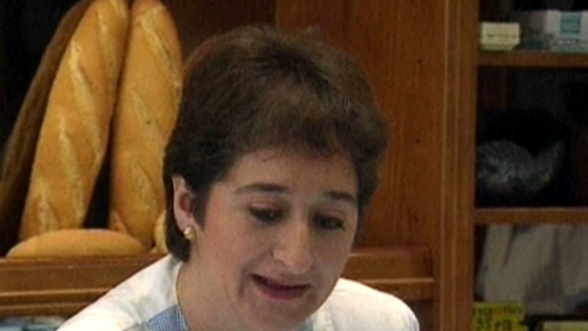 Shopping and buying items from a bakery and the central market. We first visit a bakery where we are introduced to the expression 'What are the pasties made of?', and we see a lady buying several items. Next, two friends meet and go looking for a plate in the central market. They then go to buy some flowers.