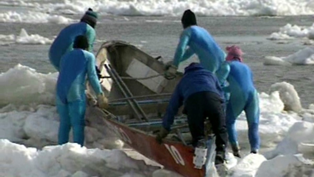 A look at how people live in a small village in Canada. The village is cut off from the rest of the world by snow and ice and the only means of transport is by plane and canoe.
