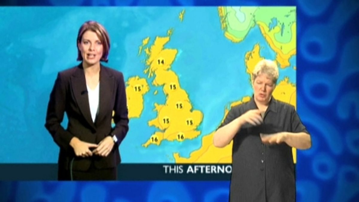 A weather presenter discusses temperature change over the course of a day. Using the map the presenter shows how the temperature will fall to below zero over the course of the night. She then poses a question and thinking time is given to work out the answer.