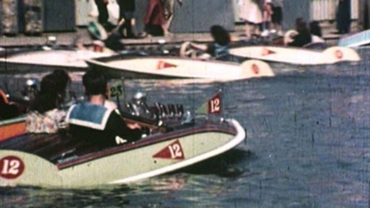 A report about the Festival of Britain, which took place in the summer of 1951. Colour footage includes film from the London event, showing exhibitions and attractions, sculptures, fairground rides, trains and a boating lake. The narrator explains the purpose of the event.
