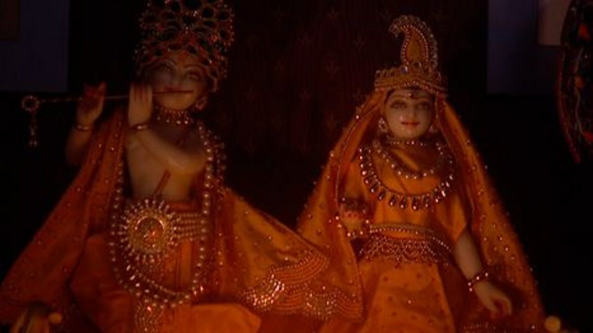 A Hindu lady introduces a Hindu family who are helping to organise a Janmashtami festival. The house is being cleaned and children are rehearsing their dance for the festival. The term 'karma' is defined.