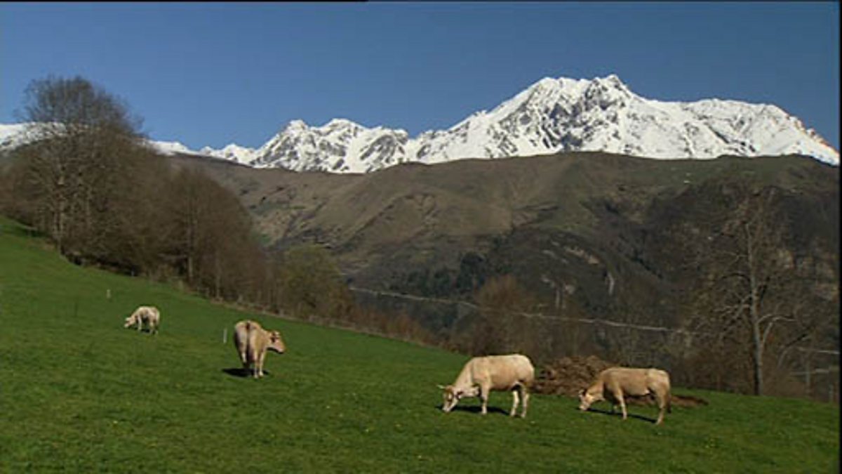 Exploring life in the Pyrenees mountain valleys. The Vallée d'Aure is a typical mountain village with a market where local farmers and gardeners sell their produce. A local speciality is goats' cheese and we visit a farm to see how the cheese is made.