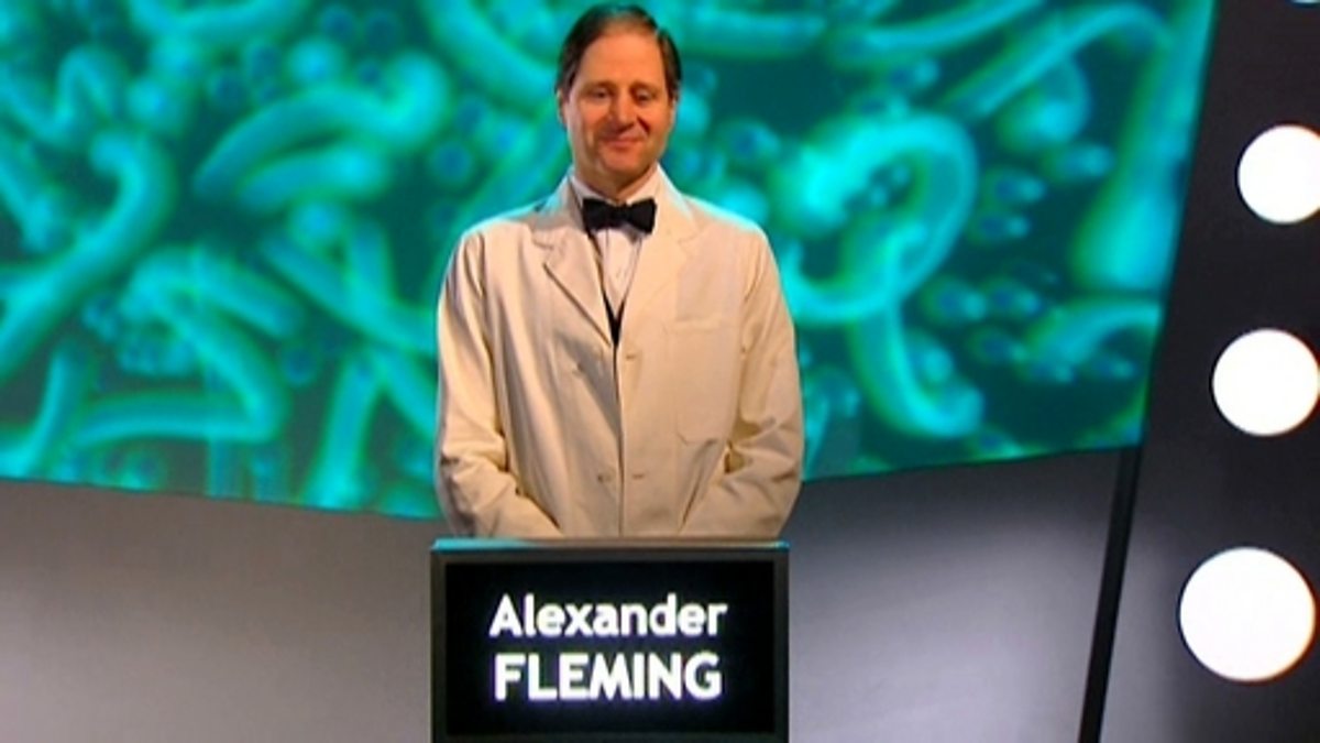While competing in a game show called 'The greatest science investigator of all time', famous scientists from history describe their life's work and explain why they deserve the title. On this show it's the turn of Sir Alexander Fleming, who describes how in 1928 he discovered penicillin, which kills some bacteria responsible for serious human infections. The most important part of the discovery happened while he was away on holiday. A blob of mould had grown on a dirty dish in his lab. All around the mouldy blob, there were no bacteria growing. He reasoned that something in the mould was killing the bacteria. This substance is what he later called penicillin. This discovery led to a group of medicines called antibiotics, which have saved countless lives.