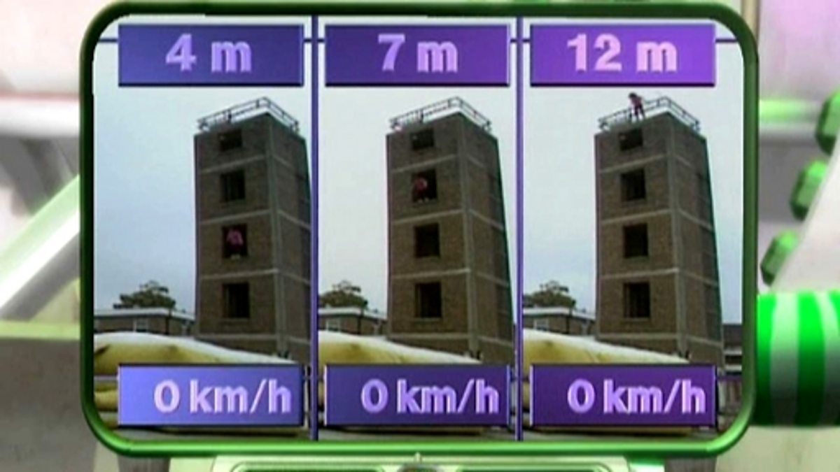 An introduction to gravity and how it affects a stunt artist when falling from three different heights. The force of gravity makes objects speed up or accelerate as they fall. The higher the jump the longer the person is in the air, so there is more time for gravity to speed up the fall. There are clear and graphic warnings related to health and safety at the end.