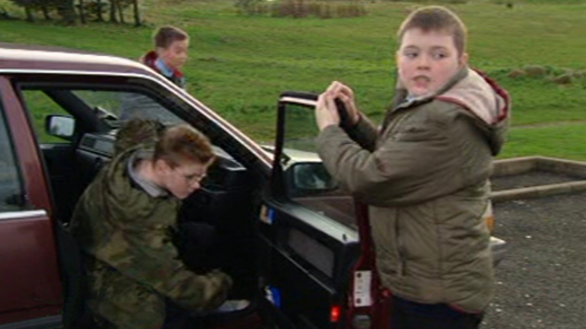 A dramatisation showing three boys stealing a car. The presenter points out that this is a serious crime and a policeman explains the charges each boy is likely to face. A notification will also be sent to the reporter of the Children’s Panel.