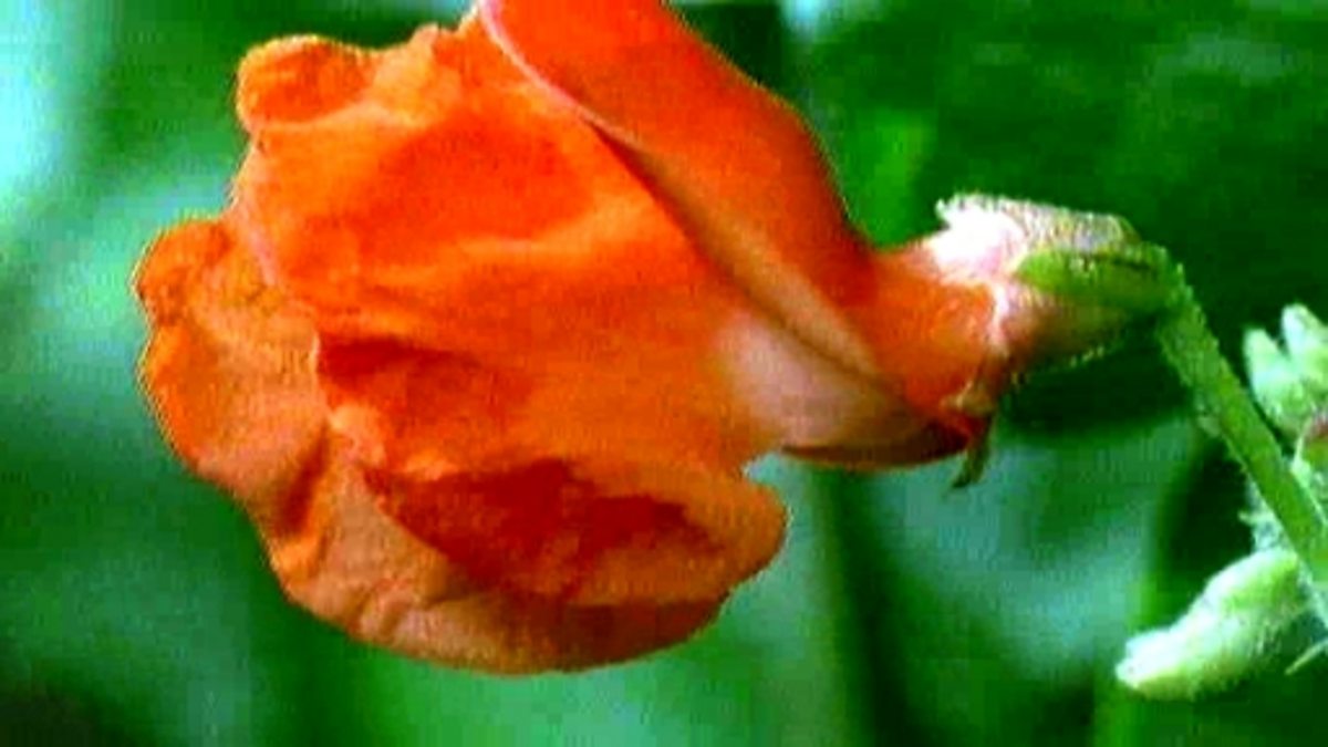 The life cycle of the runner bean, seen using time-lapse photography. This clip shows seedlings that grow into mature plants that produce a crop of beans.