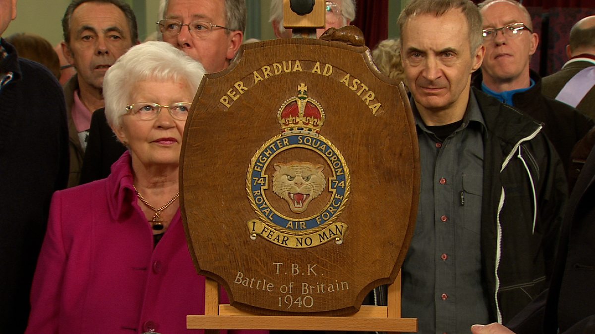 A plaque made by Robert 'Mouseman' Thompson for a pilot killed in the Battle of Britain.