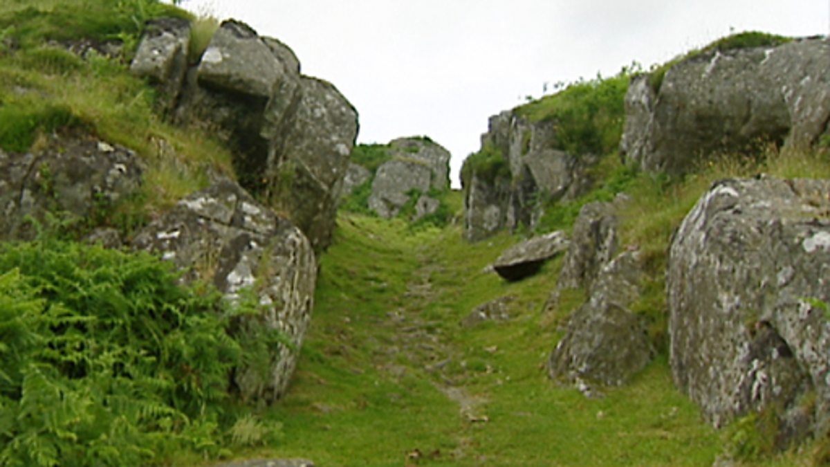 Aerial shots illustrate Dunadd Fort's advantageous defensive position. Kings of Dalriada would come to Dunadd if they were under attack. A fort was built on top of the natural stone. The main type of combat was hand to hand. Each new king came to Dunadd to be proclaimed and placed his foot into the carving of a footprint on one of the rocks.