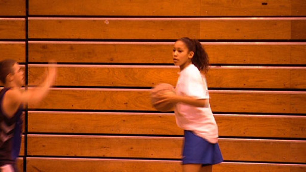 An introduction to the basic aspects of basketball including the roles of the defenders and attackers, and the scoring system. In a basketball game there are two teams of five players and two halves of 20 minutes each. You cannot bounce the ball, pick it up and start bouncing again. Also you cannot bounce the ball, pick it up and start walking. As a defender you need to stay low and slide to keep up with the opposition, except at the basket, where they can take a block. Attackers need to use their ball-handling skills to get past the defender.