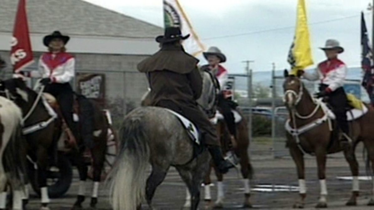 Children are introduced to modern day cowboys and cowgirls at the rodeo show in Montana. The presenter is invited to get involved in the show by dressing one of the horse carts. While she is doing this, the audience is asked to count the number of pushes and pulls they can see.