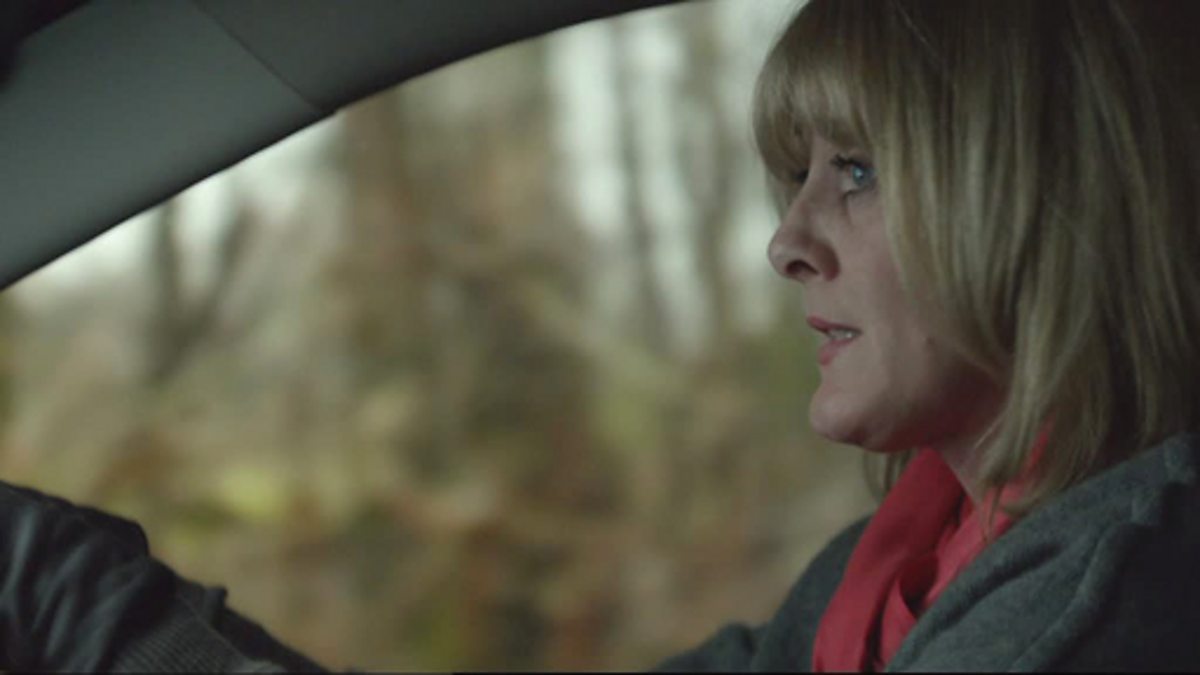 It’s Caroline driving the family to Alan and Gillian’s farmhouse for Alan and Celia’s engagement party.