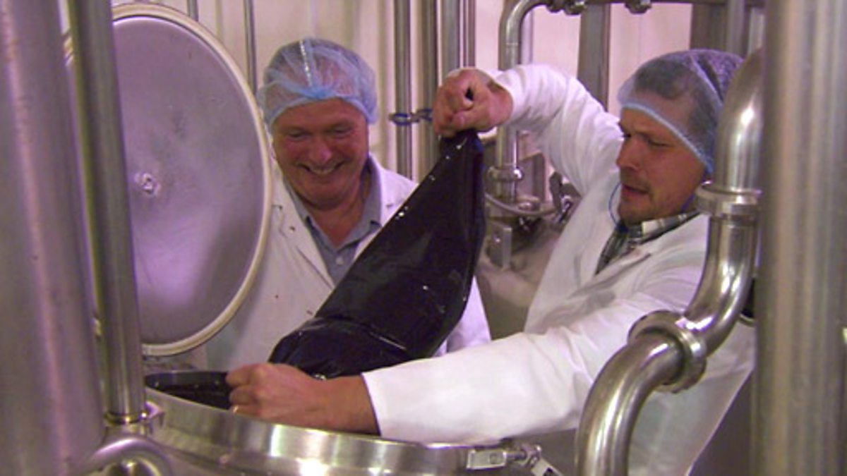 Jimmy visits a yoghurt factory and helps manufacture some yoghurt. While doing this he learns about the millions of bacteria used in the fermentation process. Bacteria are added to skimmed milk powder, sugar and milk proteins. They eat the milk proteins and produce lactic acid, which thickens the milk, turning it into yoghurt.