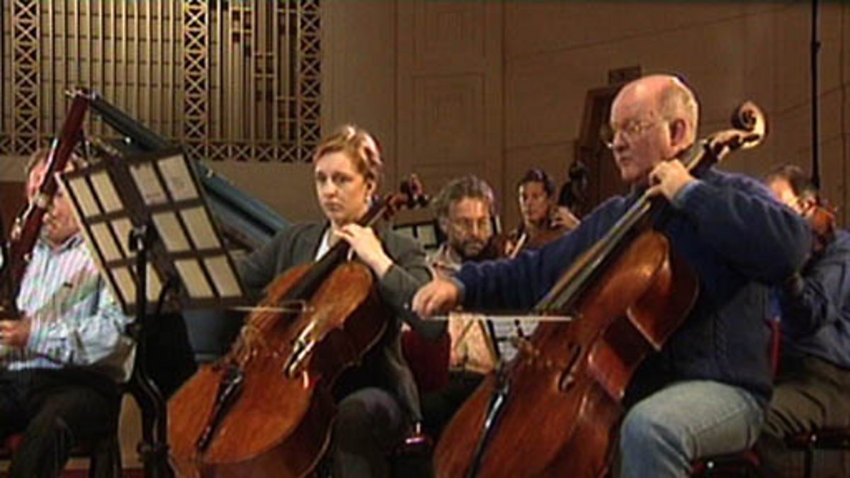 An orchestra performs 'Appalachian Spring' by Aaron Copland, playing at varying tempos. We see the work of the conductor and the various parts of the orchestra (strings, woodwind, piano) playing.