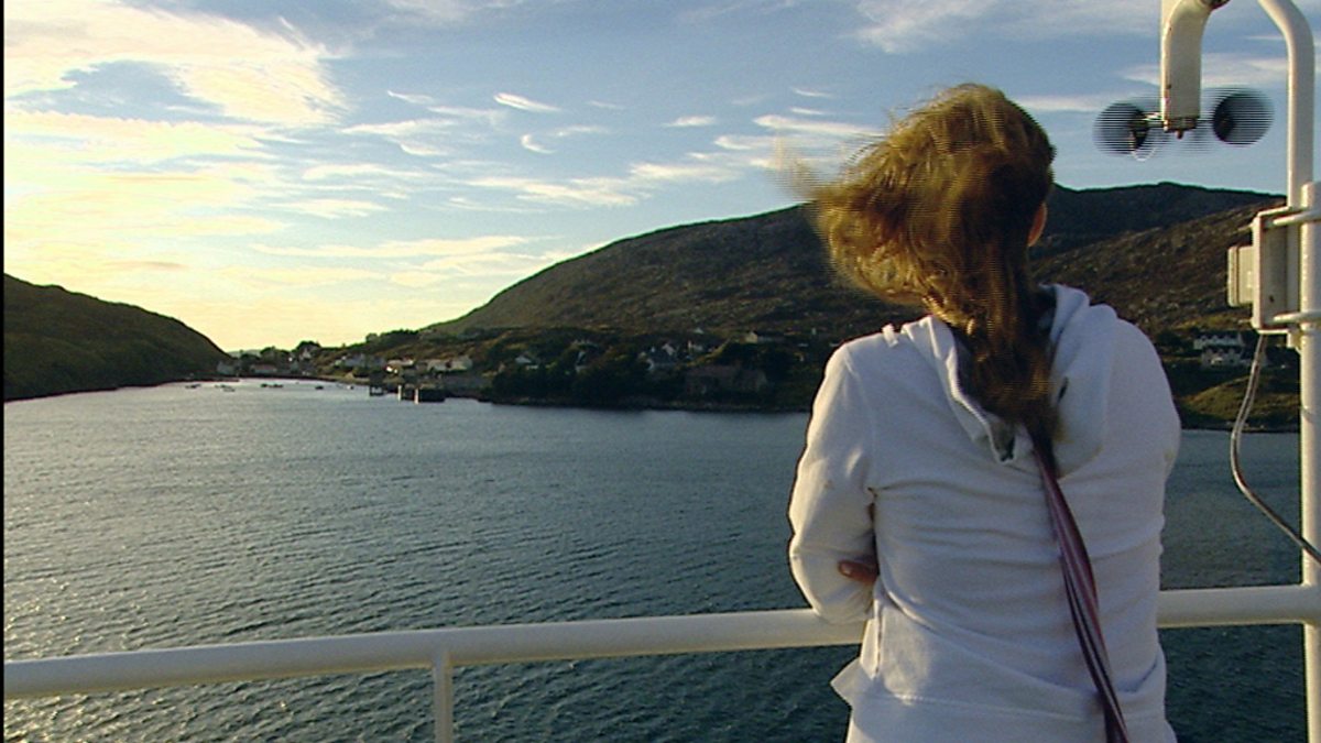 Tess takes a ferry to visit the Isle of Harris in the Outer Hebrides. It goes from Uig to the main village on the island, Tarbert. Whilst on board, she asks the captain what Harris is like.