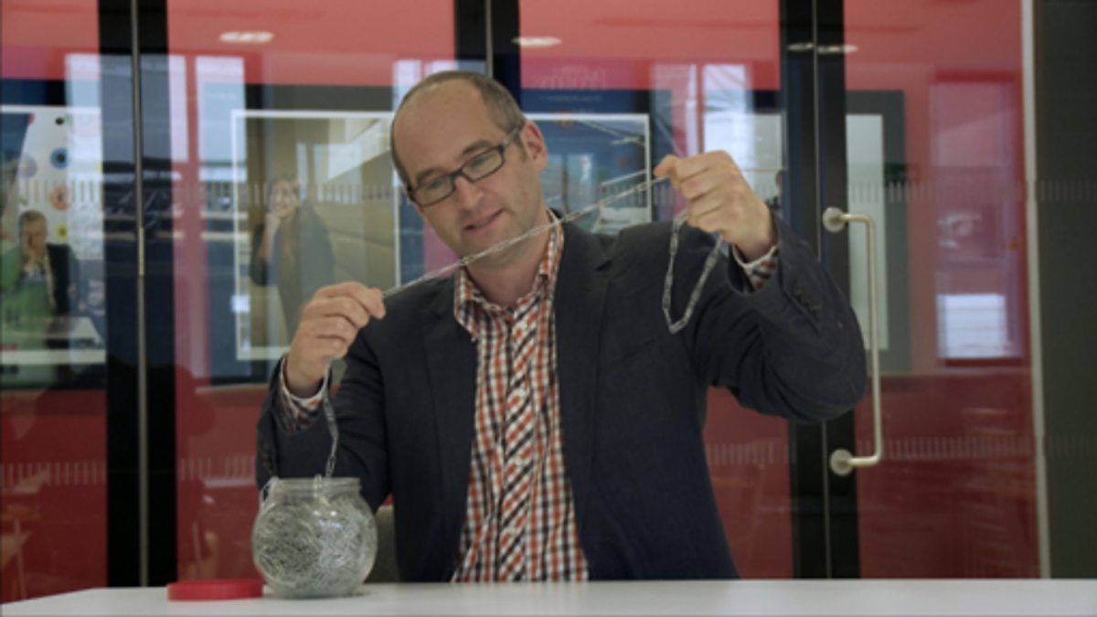 Mark Miodownik explores the history of plastics. He explains how the hydrocarbon waste products from oil refineries were first used to make nylon, PVC, polystyrene and polyester. He describes hydrocarbons as polymers and uses a paperclip chain as an analogy.