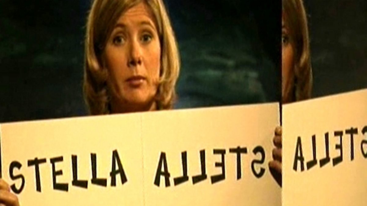 Stella holds a tennis racket and a tennis ball in front of a mirror to demonstrate how lateral inversion works. The light travelling from the left side of an object is reflected straight back and appears to come from the right side of the image. In other words you see a 'mirror image' or lateral inversion of the original object.