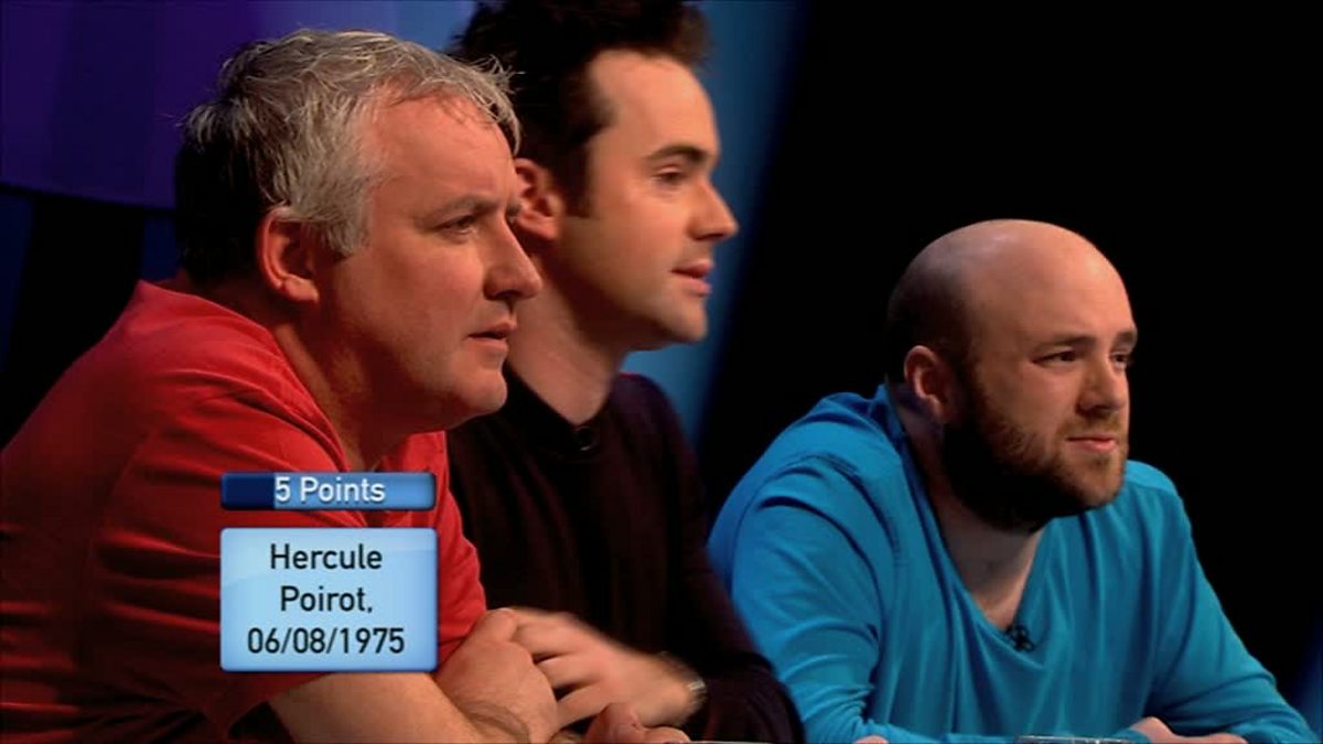 They compete to draw together the connections between things which, at first glance, seem utterly random. The first clue for this round is 'Hercule Poirot 06/08/1975'.