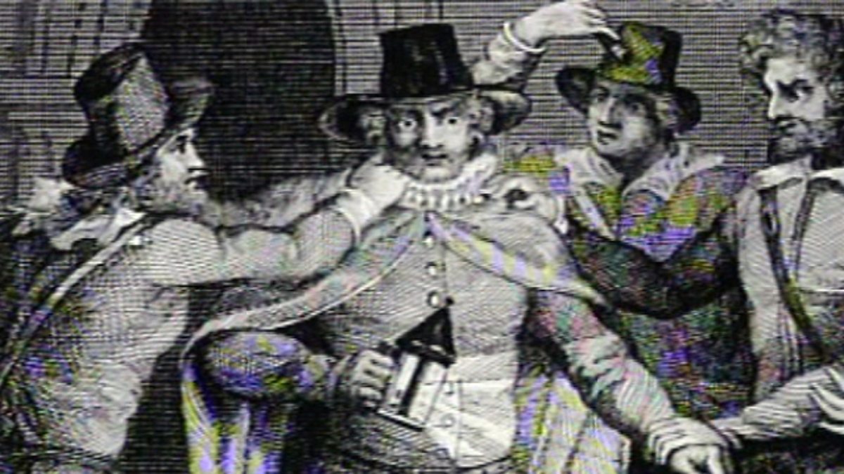 Story of the gunpowder plot of 1605 where Guy Fawkes and others set out to assassinate King James I by laying explosives under the Houses of Parliament in order to bring Catholicism back to the throne. Includes an assessment of the results of the plot, both long and short term.