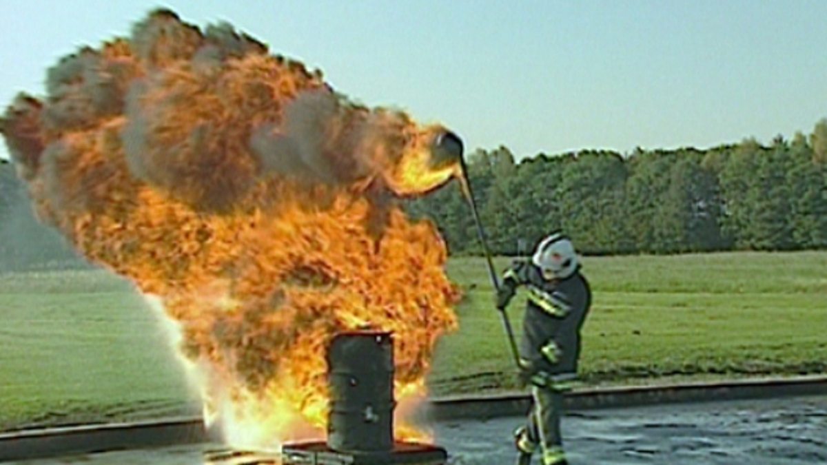 Demonstration showing petrol burning, highlighting the reason why some liquids are very flammable. Evaporisation is discussed which, unlike boiling, can occur at any temperature. Petrol evaporates in normal temperatures and it is the gas on top of the liquid that is flammable.