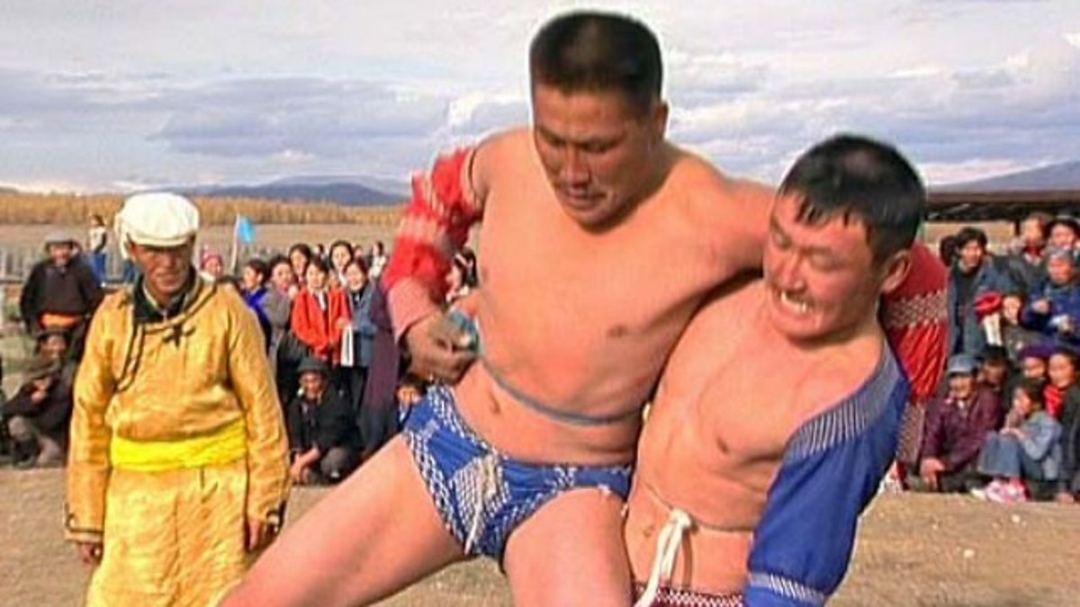 Bruce Parry with friends from the nomadic Darhad tribe at the Naadam Festival, a traditional autumn festival at the settlement of Renchinlhumbe in Mongolia. Includes footage of competitons in Mongol singing, Mongolian dancing, chess and wrestling.