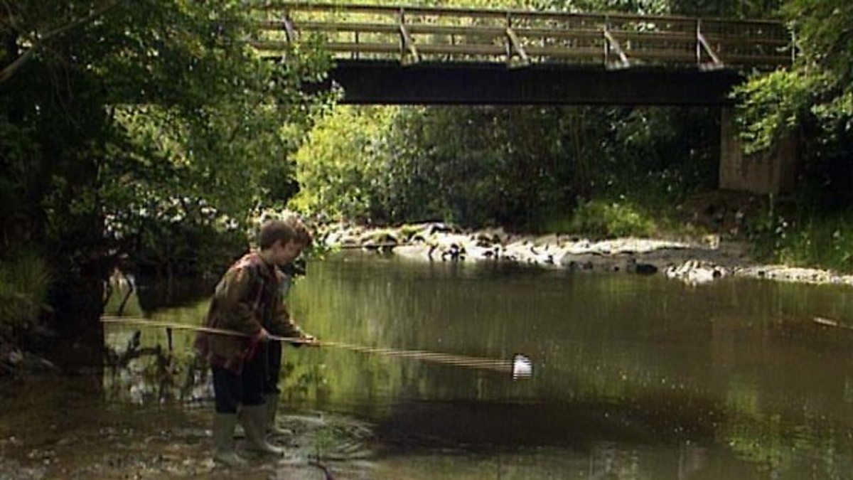 Llanidloes Junior School pupils undertaking river field work on the River Severn to measure water velocity and check the cleanliness of the water.