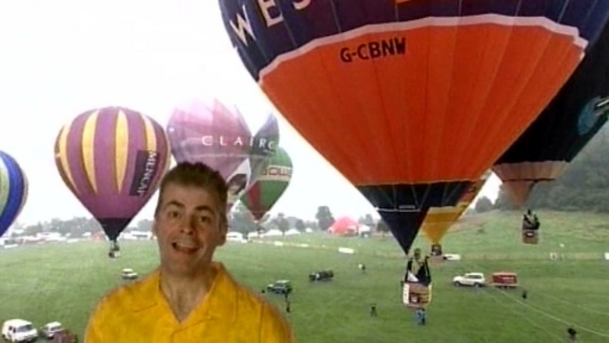 A song and images are used to describe the problems faced when travelling in extreme weather. For example, a plane grounded by a storm, a ferry being tossed on the sea, a skidding car, wind too strong to walk in, or hail stones.