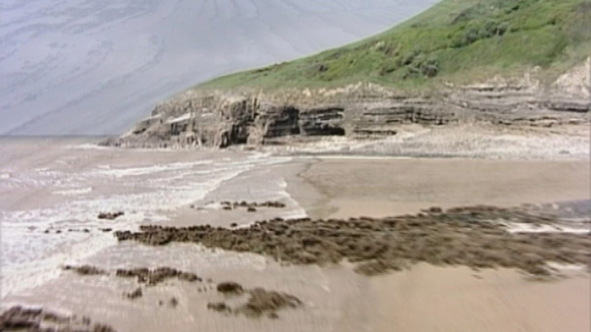 The Glamorgan Heritage Coast filmed from the air - from Nash Point to Dunraven Bay and Southerndown. Shows coastal features, highlighting the effects of coastal erosion.