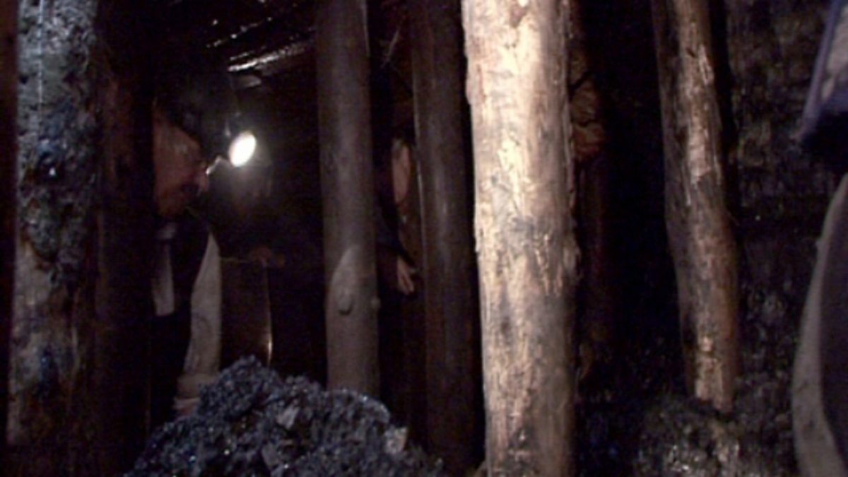 Coal miners at work in 1927 - shows the hardness of underground work in a typical coal mine. The overseer explains that they are being paid by the amount of coal they dig. Commentary gives information on the uses of coal at the time.