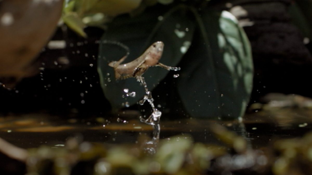 Freshwater butterfly fish avoid being eaten by leaping out of the water when under threat from underwater predators.