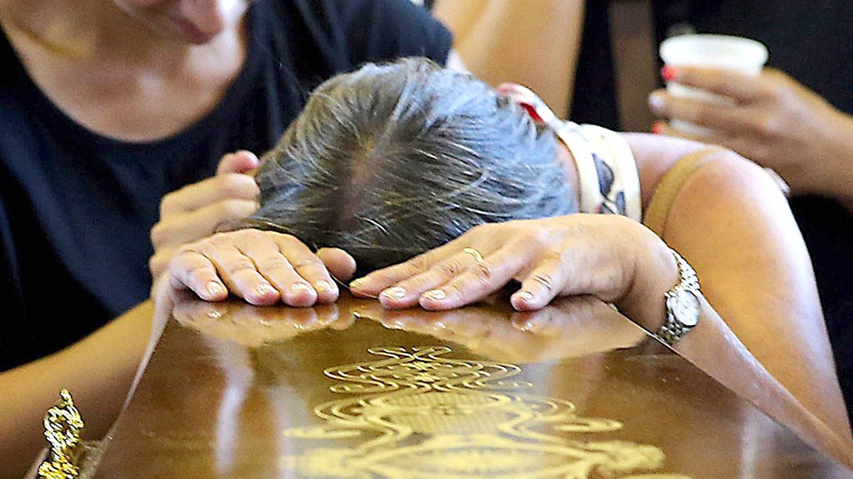 IMAGE: A woman leans on coffin in Santa Maria (Getty Images)