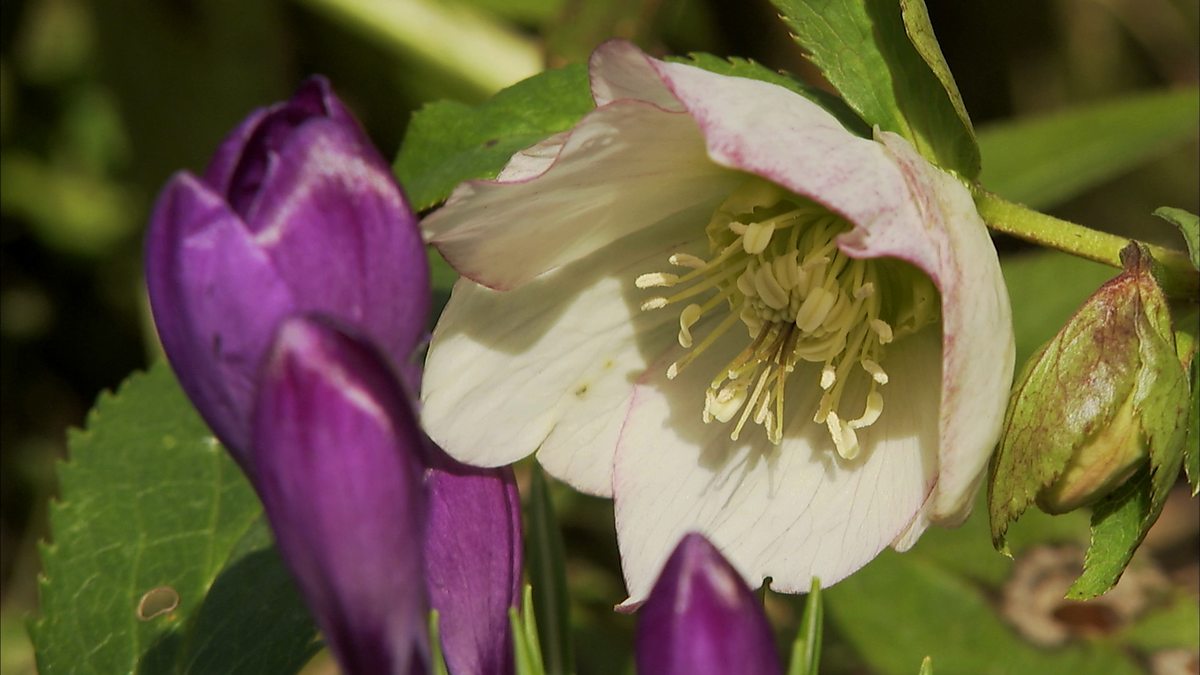 Hellebores come in a huge range of colours, from pure white to pink, freckled, and deepest black. By selecting two favourite plants and cross-pollinating them, new plants can be created. Carol Klein shows us how.
