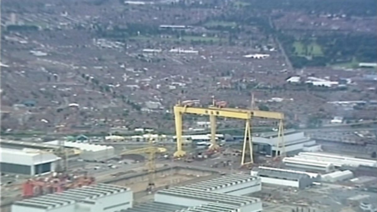 News report about the clearing and regeneration of the Titanic Quarter in Belfast, Northern Ireland.